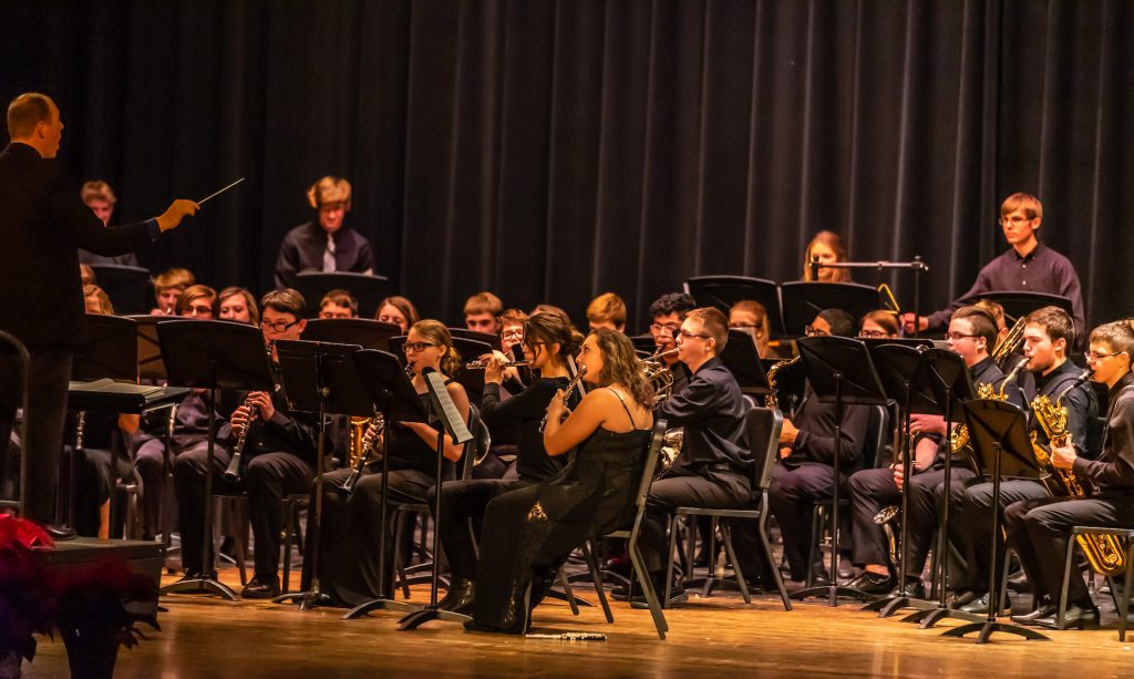 The band department includes 131 students in grades 7-12. Unique to our program are technology-driven enhancements to our classes and offering jazz ensemble for course elective. Lastly, we believe that a rigorous curricula has driven our students toward individual and organizational success in Indiana State School Music Association (ISSMA) festivals, Indiana High School Color Guard Association (IHSCGA) contests and the Indiana State Fair Band Day.
