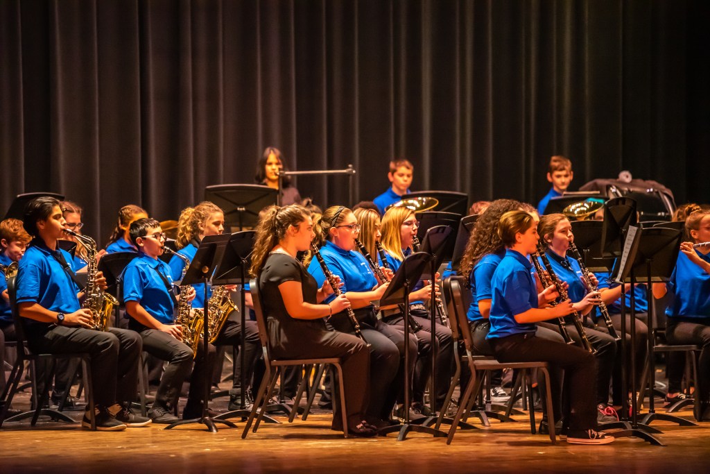 The beginning concert band provides students with a balanced comprehensive study of music through the concert band, which develops skills in the psychomotor, cognitive, and affective domains. Ensemble and solo activities are designed to develop elements of musicianship including tone production, technical skills, intonation, music reading skills, listening skills, analyzing music, studying historically significant styles of literature, and integration of other applicable disciplines. Experiences include improvising, conducting, playing by ear, and sight-reading. Students develop the ability to understand and convey the composer’s intent in performance of music.